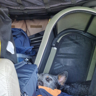 Walks, small trips, local food – and yes, more herring rolls. Mrok barked at cows, the weather was perfect, and the days slipped by easily. Evenings brought guitar music from a nearby tent. We felt more and more like partners with Mrok, our ACD sharing these adventures with us.